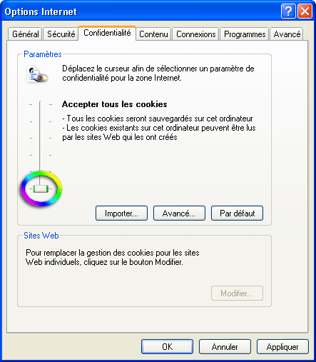 - Dans la boite de dialogue, choisissez l'onglet "Confidentialité".